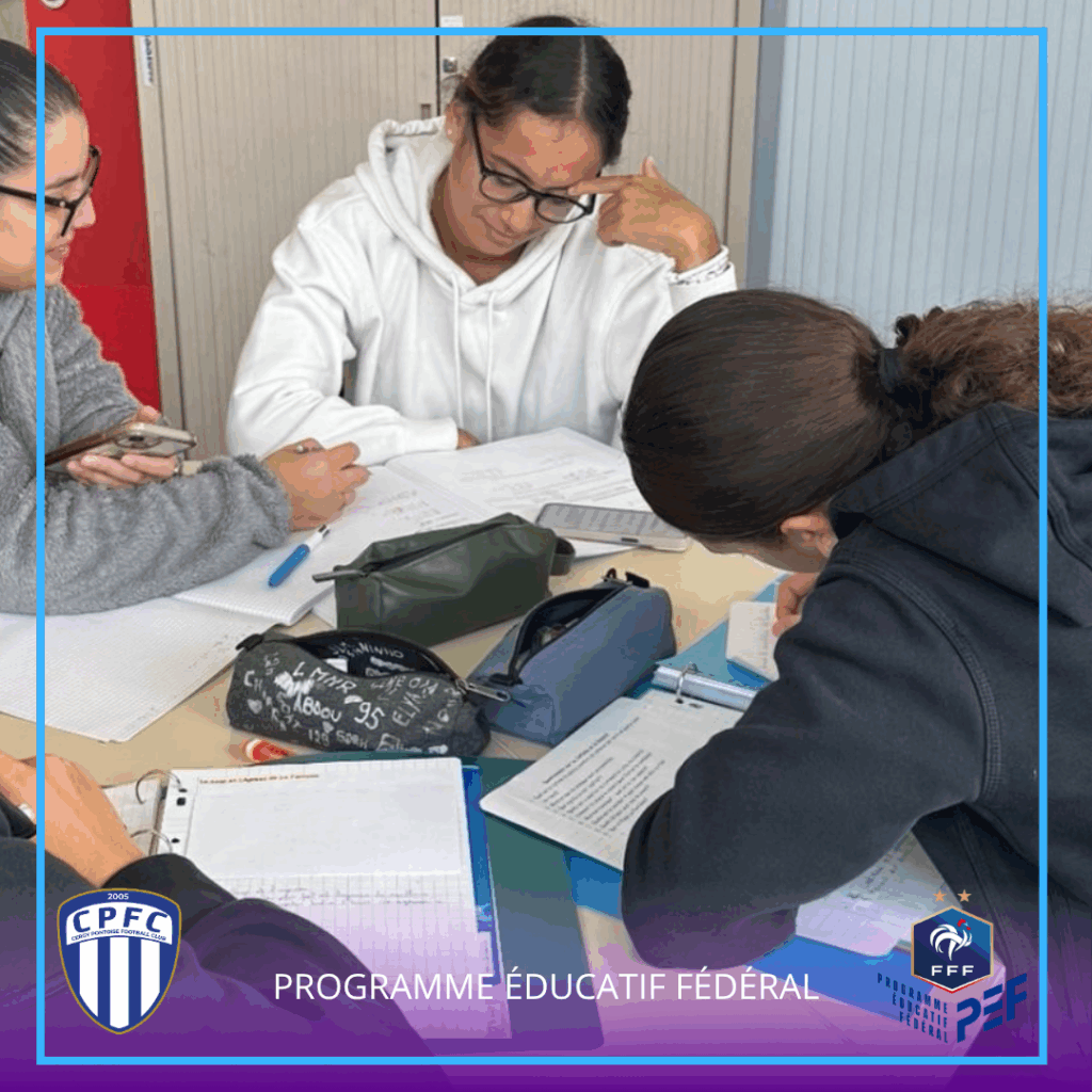 Dans le cadre de notre Programme Éducatif Fédéral, le club a mis en place une aide aux devoirs au Club House, destinée à accompagner nos jeunes joueuses dans leur parcours scolaire.