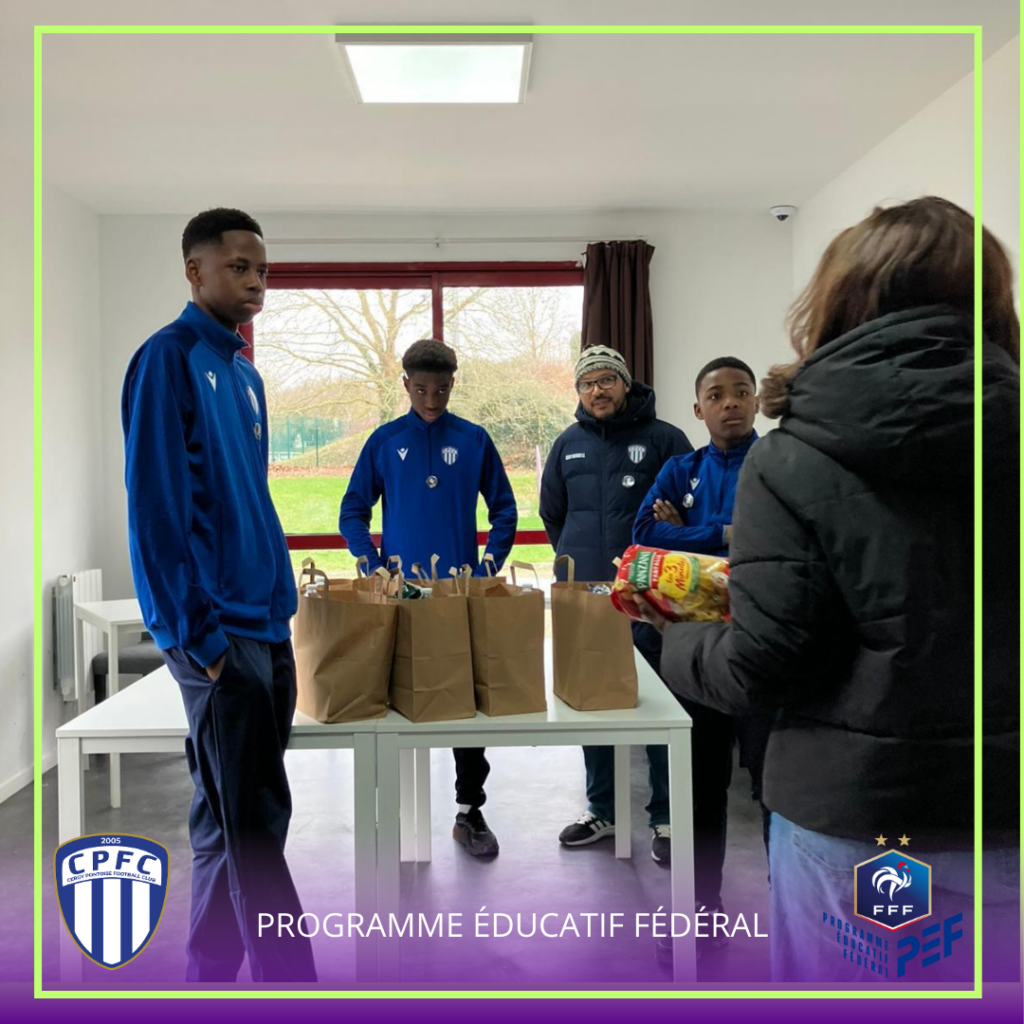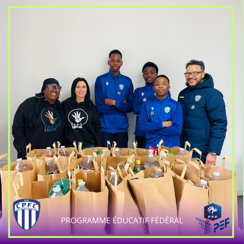 Aujourd’hui, nos jeunes du club U16 ont eu l’opportunité de participer à un geste solidaire fort. En collaboration avec l’association United Cergy, ils ont contribué à la distribution des kits alimentaires récoltés lors de notre récente collecte.